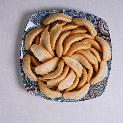 حلوى مغربية تقليدية على شكل هلال، محشوة بعجينة اللوز المعطرة بماء الزهر، ومغلفة بعجينة رقيقة.
