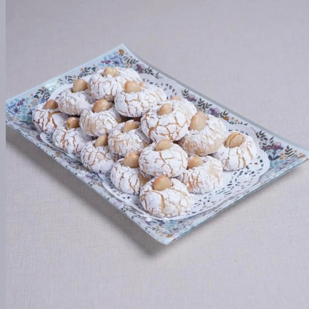 حلوى مغربية فاخرة تُحضّر من اللوز المطحون والسكر وماء الزهر، تُخبز برفق حتى تصبح طرية وتذوب في الفم. تُقدَّم مع الشاي المغربي وتُزيَّن بسكر ناعم و حبة لوز في الأعلى.